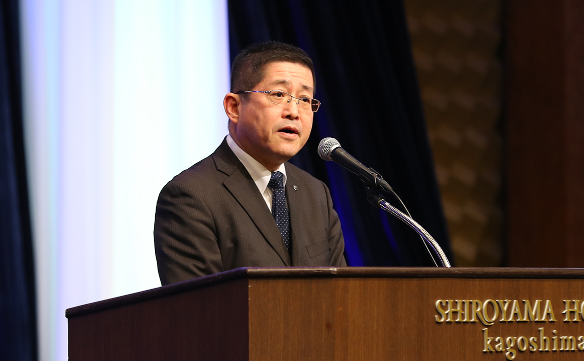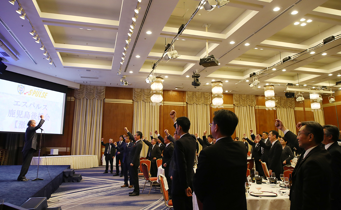 「本日は、エスパルス後援会激励会のご案内を致しましたところ、このようにたくさんの皆さんにお集まりいただきました。本当にありがとうございます。そして、本日は大変お忙しいなか、ご来賓として鹿児島市より松永副市長、鹿児島市議会より山口議長、鹿児島市サッカー協会の木原会長を始め、たくさんの皆さまにもお越しいただいております。ありがとうございます。そして静岡県からも静岡県庁の文化・観光部の増田部長代理、静岡県商工会議所連合会より村松常務理事、私どもと友好提携を結ばさせていただいております日本平ホテルの久野副社長を始め4名の方にもご参加いただいております。ありがとうございます。それから、フジドリームエアラインズより黒川営業部長、清水エスパルスより左伴社長ほか皆さまにも遠路お越しいただいております。ありがとうございます。