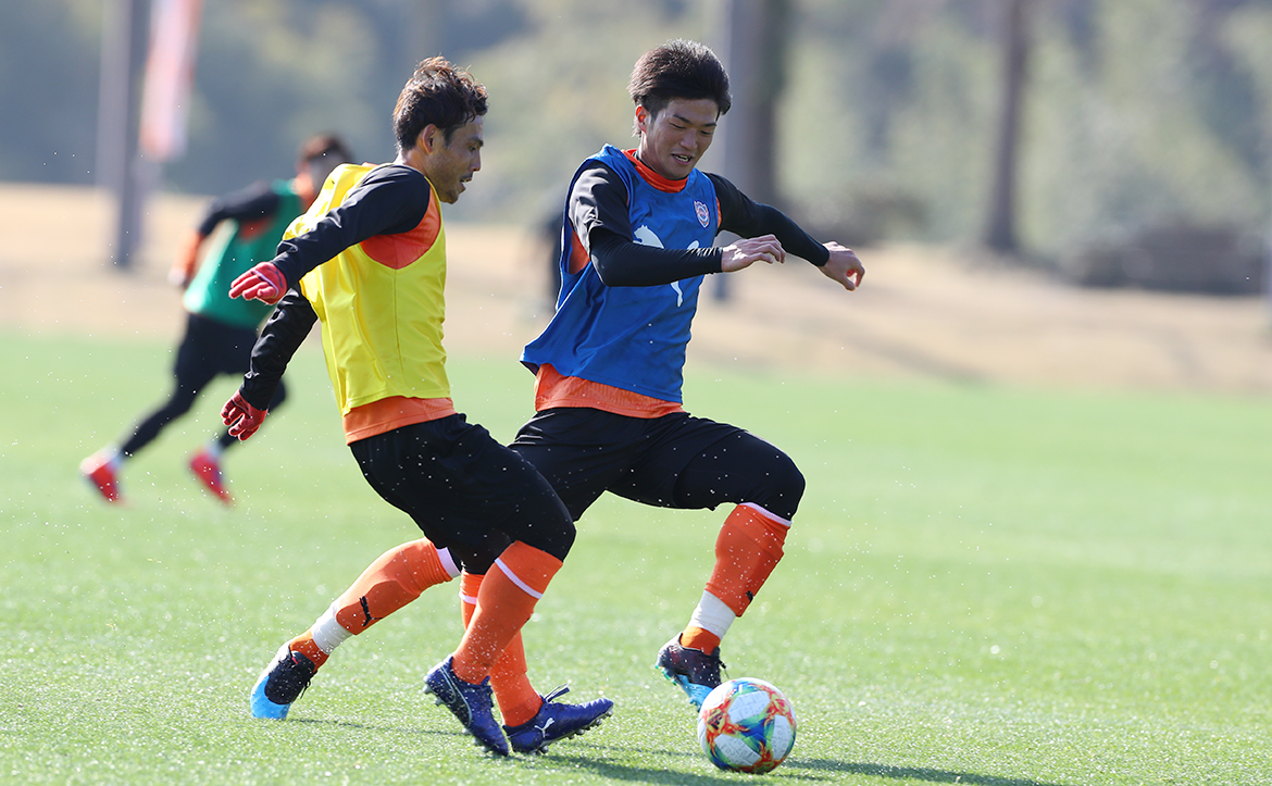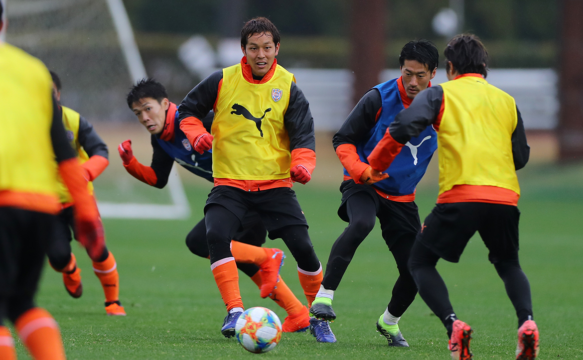 午前練習は、強い日差しが照りつけ、コートを脱いでも汗がにじむほど。半袖で練習を見ている見学者もいたように、暖かい中での練習になった。アジアカップを戦っていた北川航也、怪我からの復帰となる河井陽介がチームに合流し、午前練習はジュビロ磐田戦の1本目、2本目に先発した選手はオフとなった。