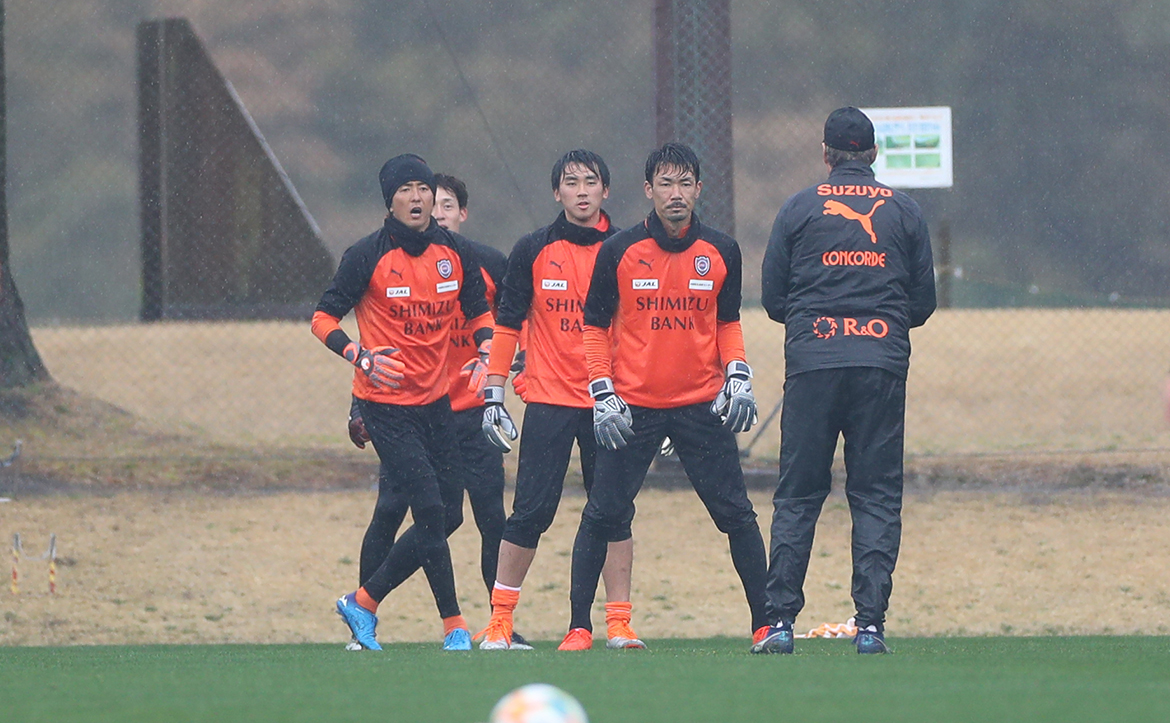 午後は打って変わって豪雨の中での練習だった。午前がオフになった選手たちも合流し、最初のウォーミングアップこそ別々で調整していたが、守備4対攻撃8のポゼッション練習からチーム全員が揃って練習することになった。