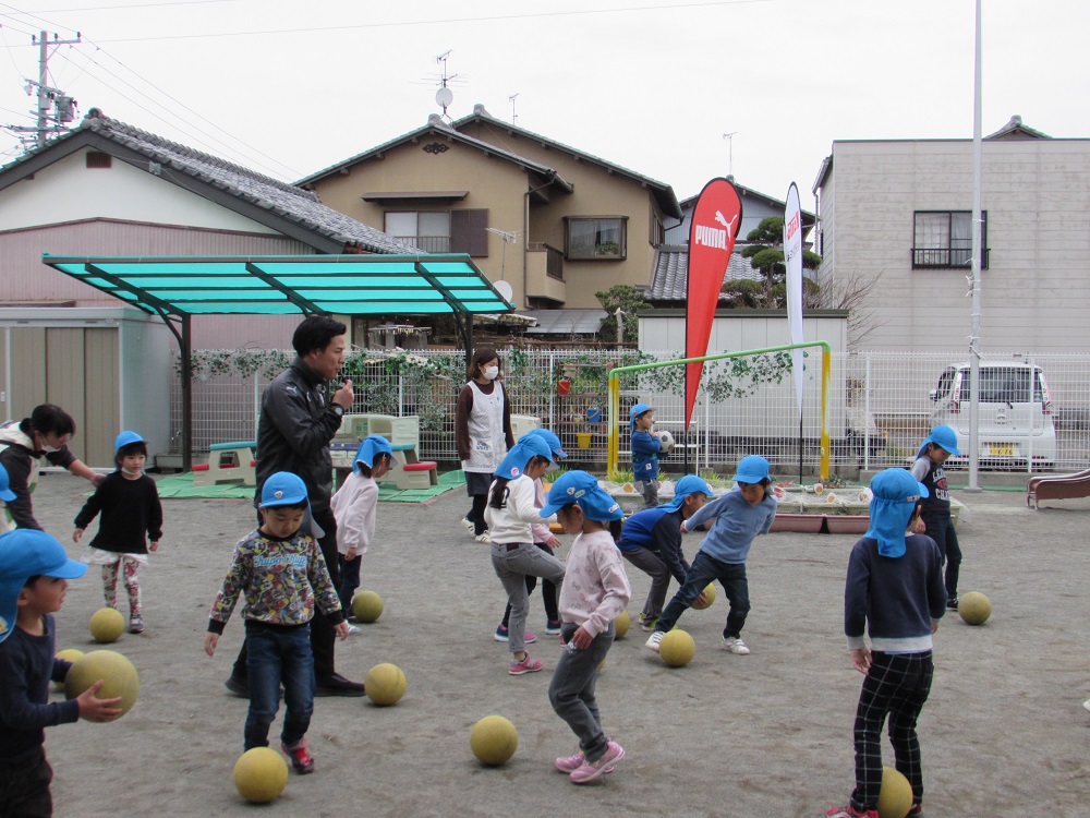 エスパルスアカデミーは2月27日(水)、川原こども園を対象にスポーツ巡回教室を実施しました。