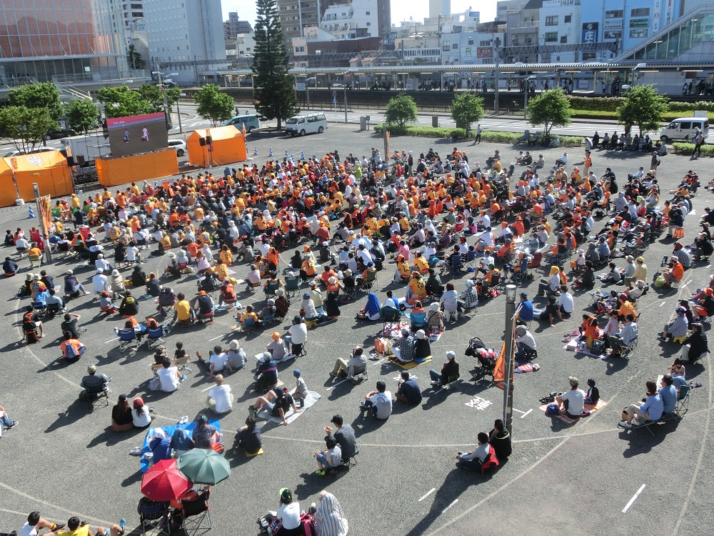 3.近隣に住宅、商業施設がありますので、大声や鳴り物等による応援は禁止です。また、横断幕、大型フラッグ等による応援も、周りの観覧者の迷惑となりますので禁止させていただきます。
