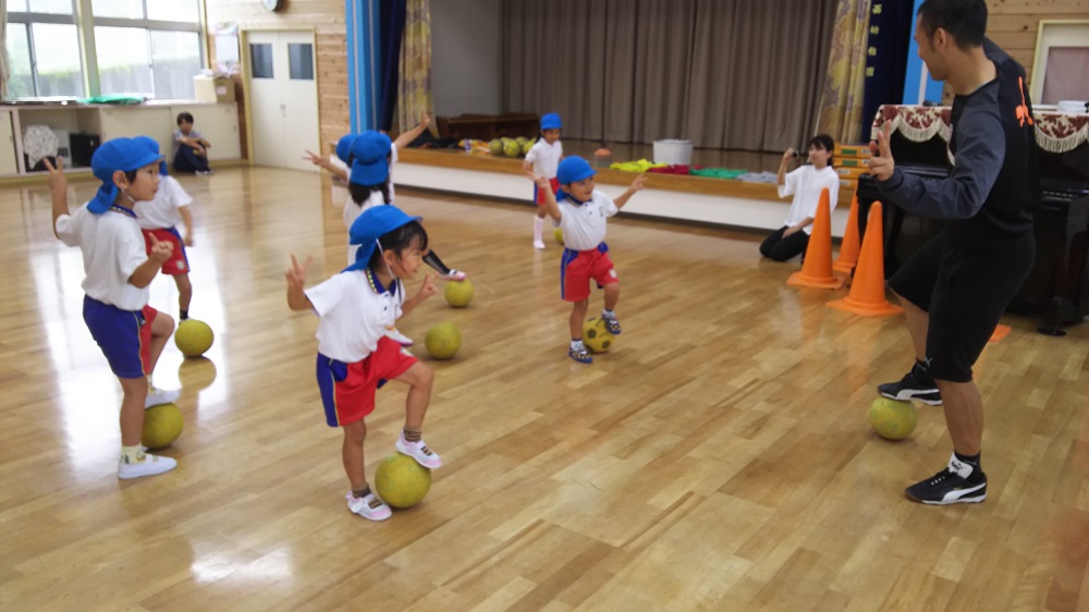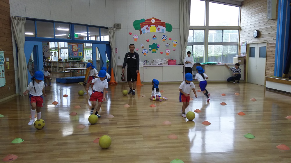 エスパルスアカデミーは7月2(火)、原里西幼稚園を対象にスポーツ巡回教室を実施しました。