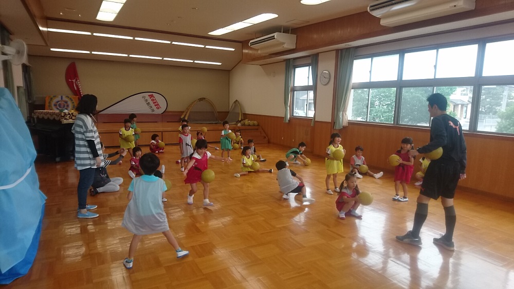 エスパルスアカデミーは7月9(火)、天間幼稚園を対象にスポーツ巡回教室を実施しました。