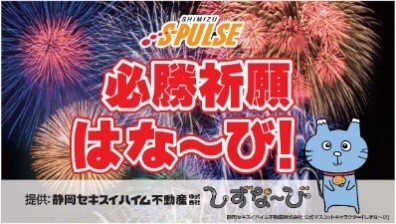 エスパルスは、静岡セキスイハイム不動産株式会社にご協賛をいただき、夏のホームゲーム3試合を対象に『しずな~び 必勝祈願はな~び』(花火)を実施しますので、下記の通りお知らせいたします。本企画は、ホームでのエスパルスの勝利を後押しいただくこと、またご来場の皆様に今以上にスタジアム観戦をお楽しみいただくことを目的としており、昨年に引き続き3年連続での実施となります。