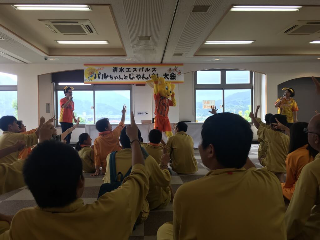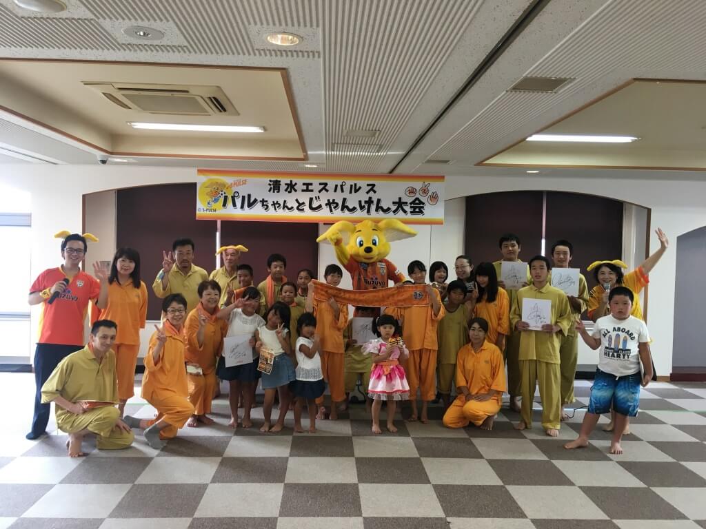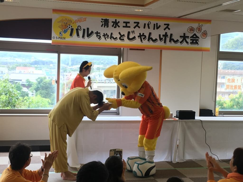 じゃんけん大会に勝ち残った方にはパルちゃんがプレゼントを進呈。選手サイン入り色紙等のプレゼントを受け取った方々は、笑顔で溢れていました。パルちゃんとご参加の皆様で記念撮影を実施し、イベントは終了となりました。皆様の笑顔と元気で非常に盛り上がったイベントとなりました。