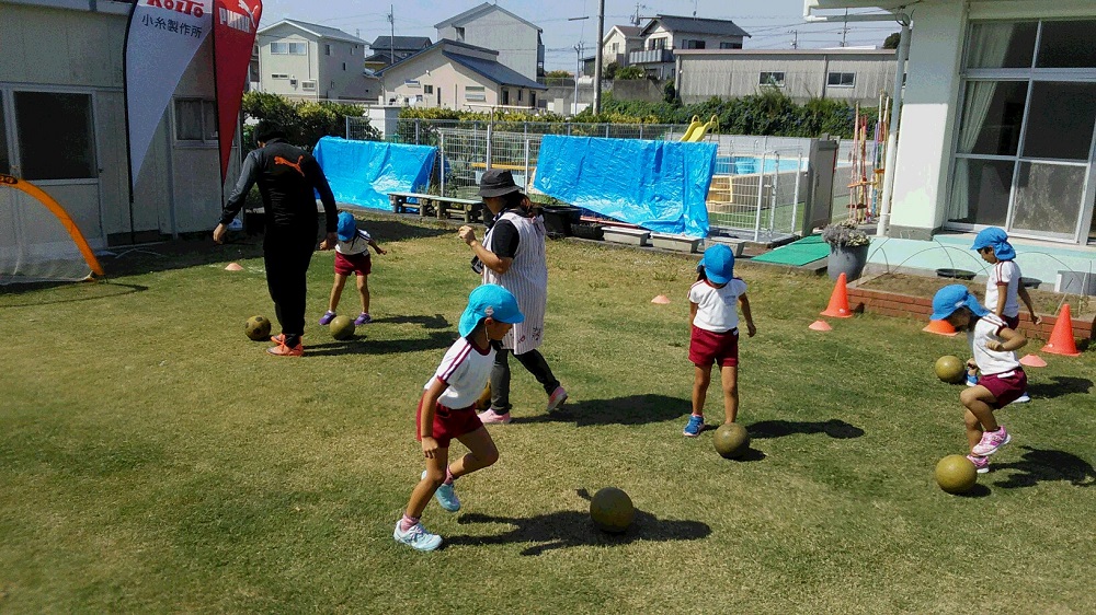 エスパルスアカデミーは10月2日(水)、地頭方幼稚園を対象にスポーツ巡回教室を実施しました。