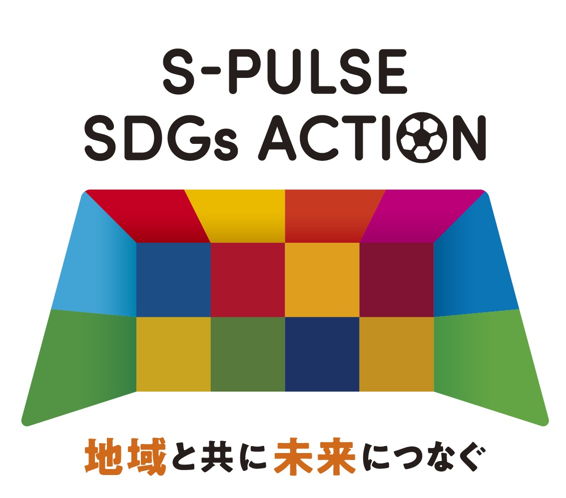 優先SDGs目標とともにキャッチフレーズ、ロゴを選定致しました。キャッチフレーズは、『S-PULSE SDGs ACTION 地域と共に未来につなぐ』です。ロゴの「サッカーゴール」をモチーフとしたマークとキャッチフレーズには、SDGsロゴの17色のテーマカラーを使用しており、「17の目標の達成」というゴールを目指してエスパルスが事業を進めていくことを表現しています。