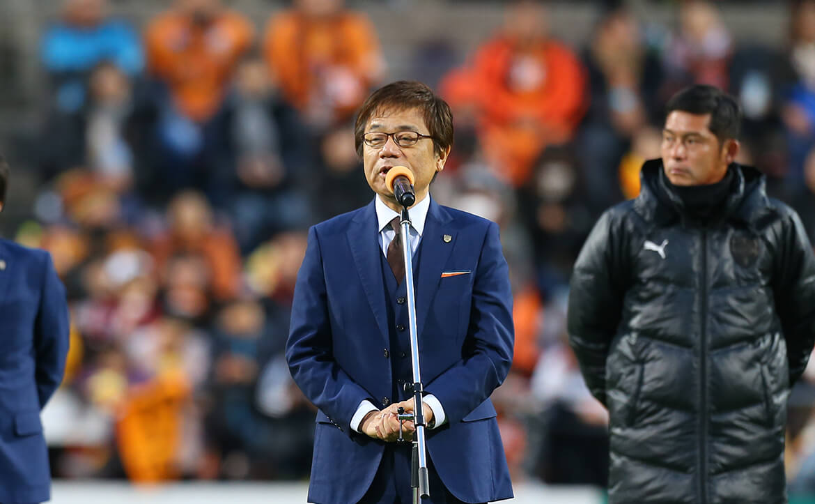 挨拶の前に、鳥栖のサポーターの皆さんに感謝申し上げます。寒い中ご来場いただき、ありがとうございました。そして、残留おめでとうございます。今日、スタジアムに来ていただきエスパルスを応援してくださった皆様、そしてテレビをご覧の皆様、パートナー、株主の皆様、本当に一年間応援をいただきまして、厚く御礼申し上げます。リーグ戦は終わりましたが、公式戦はまだ残っています。皆さんの喜怒哀楽の大きさが、どのくらいエスパルスと共にあるのかと考えてみると、大きいに越したことはありませんが、今シーズンは怒りや悲しみの感情が、喜び楽しみより若干勝ってしまっているはずです。そのツケを残りの試合で返したいと思います。その為には2試合が必要です。1試合目は神戸に行かなければなりませんが、4,000人を超える皆さんに足を運んでもらいたいと思っています。その次の元旦は、新しい国立競技場を第二のホームスタジアムと呼べる、そんな試合をして喜怒哀楽の帳尻を合わせたいと思います。簡単ではありますが、シーズンは途中ですので私からのご挨拶は以上となります。しっかりとした振り返りはシーズンが終わった際、追ってご報告させていただこうと思います。どうもありがとうございました。