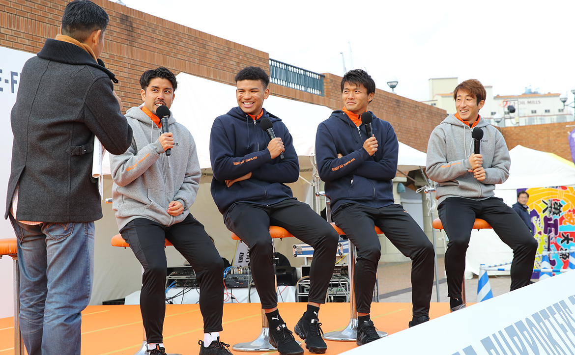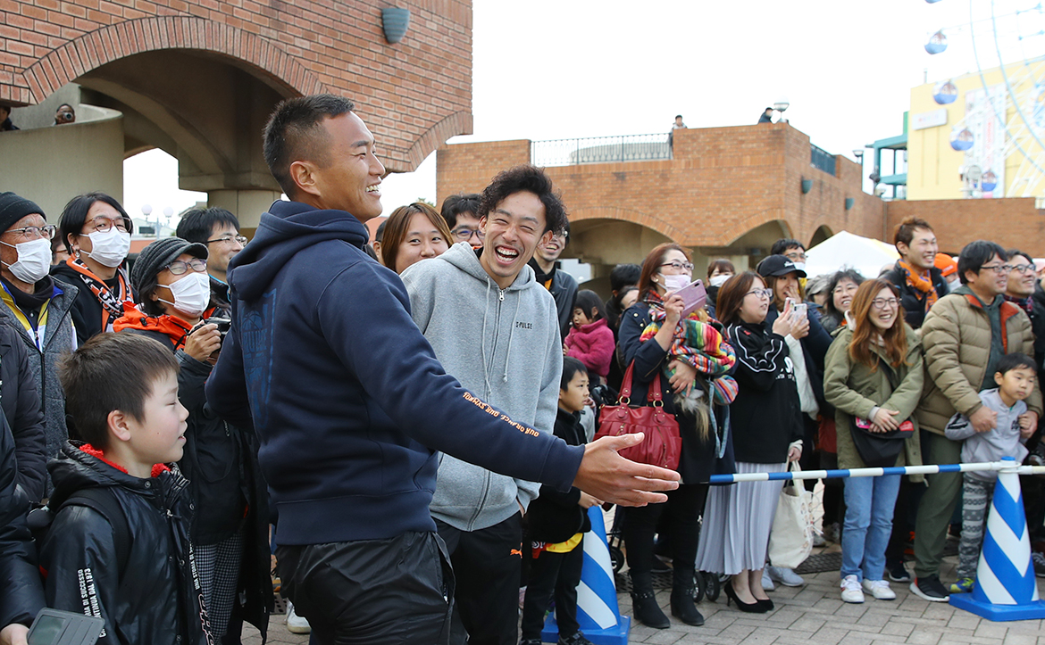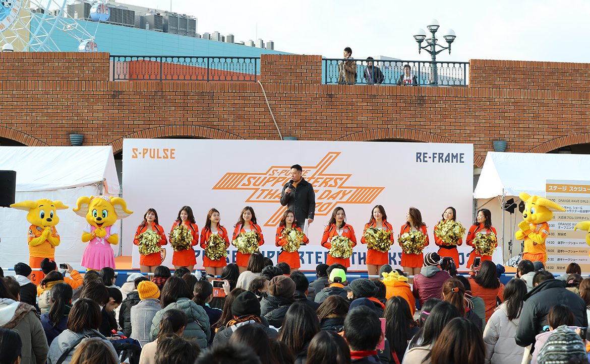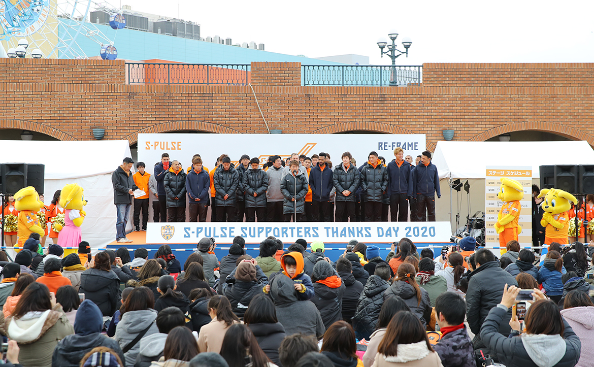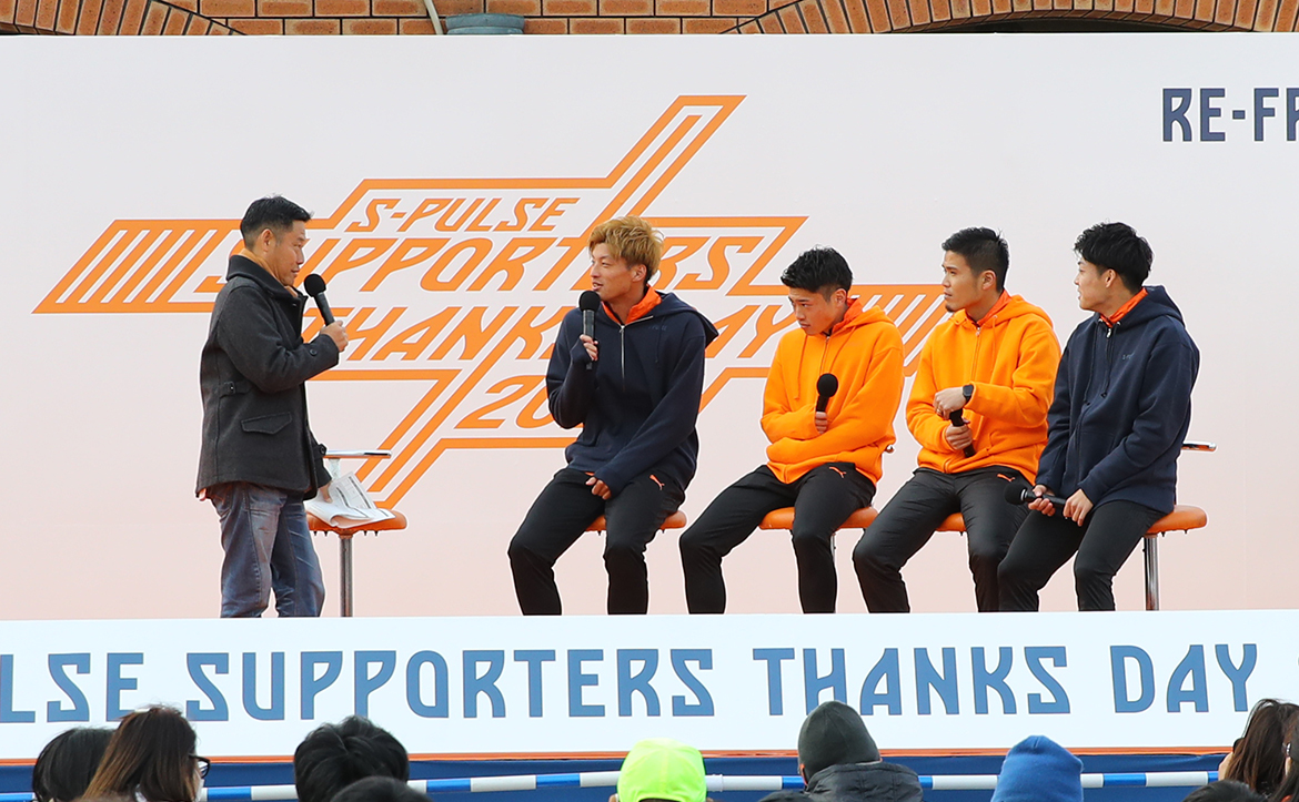 「皆さんこんにちは。寒いところ、「S-PULSE SUPPORTERS THANKS DAY 2020」に多くのファン・サポーターの皆さんにご来場いただき誠にありがとうございます。ぜひ、皆さんの力を借りて、サッカー王国静岡にしたいと思います。すでに高校生の男子、女子が我々よりも先を行っていますが、高校生に負けるわけにはいきませんので、我々プロが栄冠を手にして、まさに「サッカー王国、ここにあり」というところを皆さんと一緒に共有し、喜びを分かち合いたいと思います。今日は、選手とファン・サポーターの皆さんと触れ合っていただき、選手の違った魅力も知っていただけたらと思います。今シーズン全力で戦いますので、皆さんよろしくお願いします。静岡の街をオレンジ色に染めましょう」