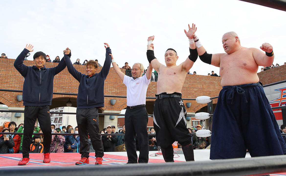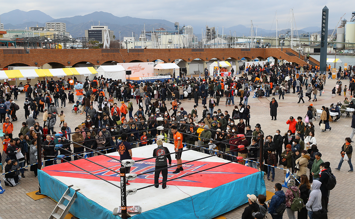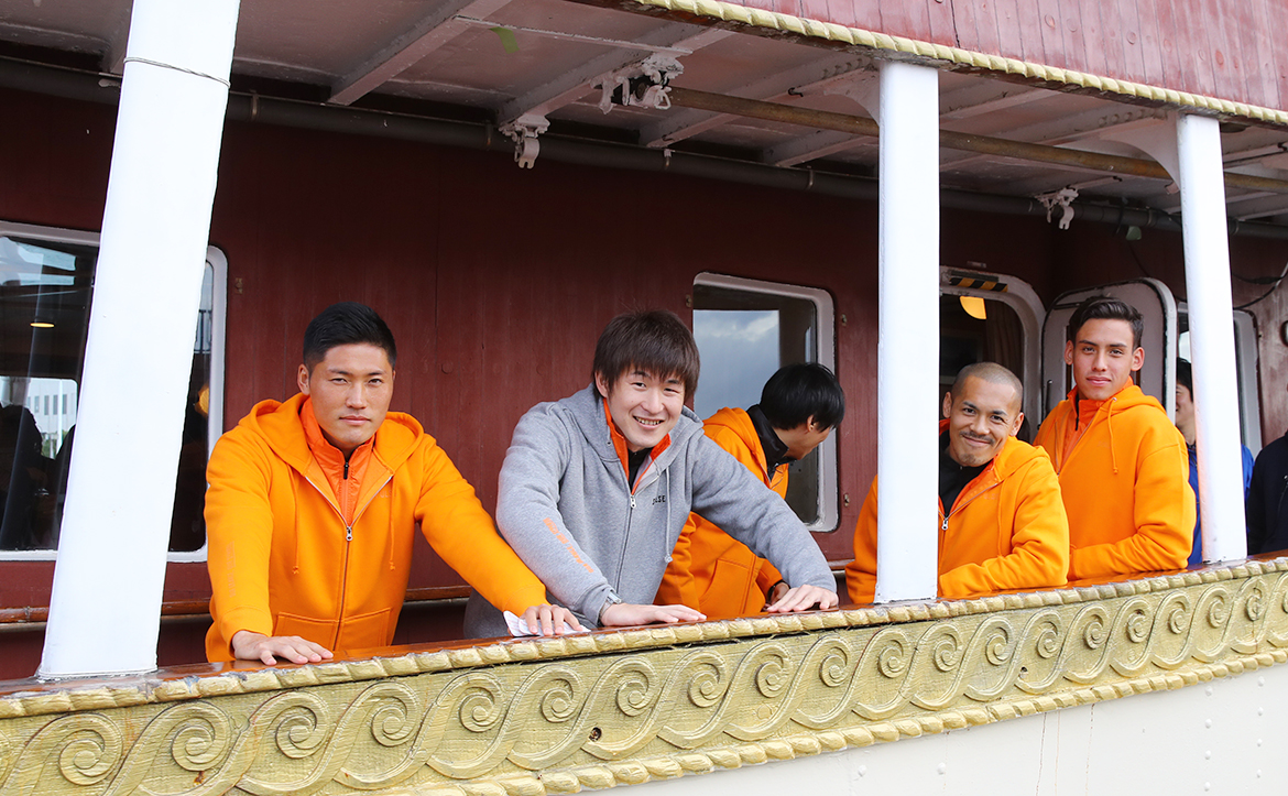 今年はエスパルスと大日本プロレスがコラボ。14時半の部では、子どもたちと西村恭史選手、滝裕太選手がプロレス教室に参加。レスラーの青木優也選手に教わりながら、スクワットとプッシュアップにチャレンジするものの、普段から鍛えている二人もこれにはキツそうな表情を浮かべます。最後はロープダッシュ。ロープの跳ね返りを使いながらリングを往復し、中央で前転をしてポーズ。滝裕太選手はガッツポーズでリングを走り回って声援に応えていました。この他にも会場では写真撮影会や選手による釣り講座、エスパルスドリームフェリー『オーシャンプリンセス号』を使用した清水港クルーズなどが行われました。その中で最も好評だったのが清水港クルーズ。参加した吉本選手や奥井選手などは、ファン・サポーターの皆さんと触れ合いを楽しんでいました。ステージ上で行われたトークショーも、ここでしか聞けない話のオンパレードに大きな盛り上がりを見せていました。