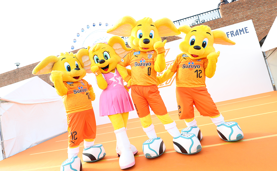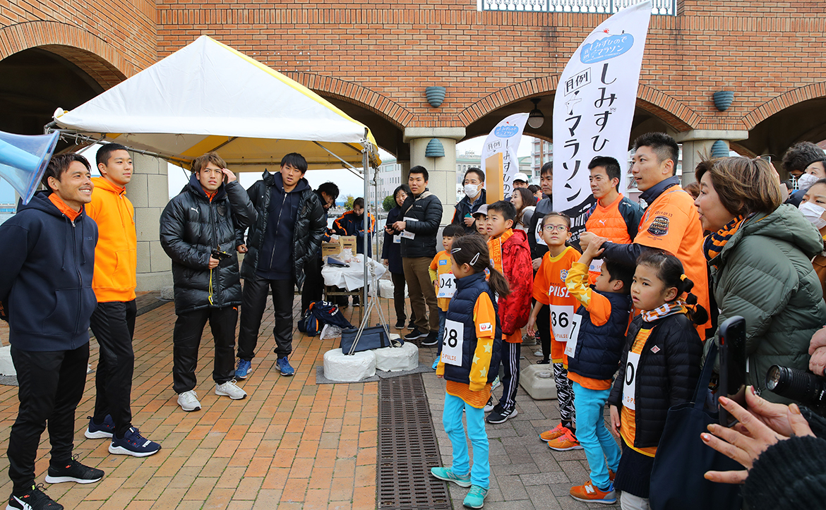 監督、選手スタッフは、清水魚町稲荷神社にて必勝祈願を行ったあとに会場へと移動。14時にマリンパークの特設ステージに揃いました。