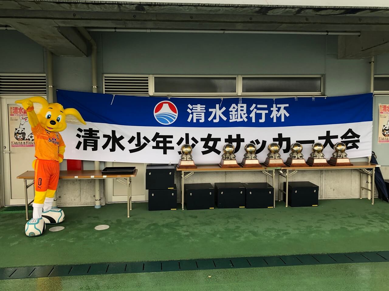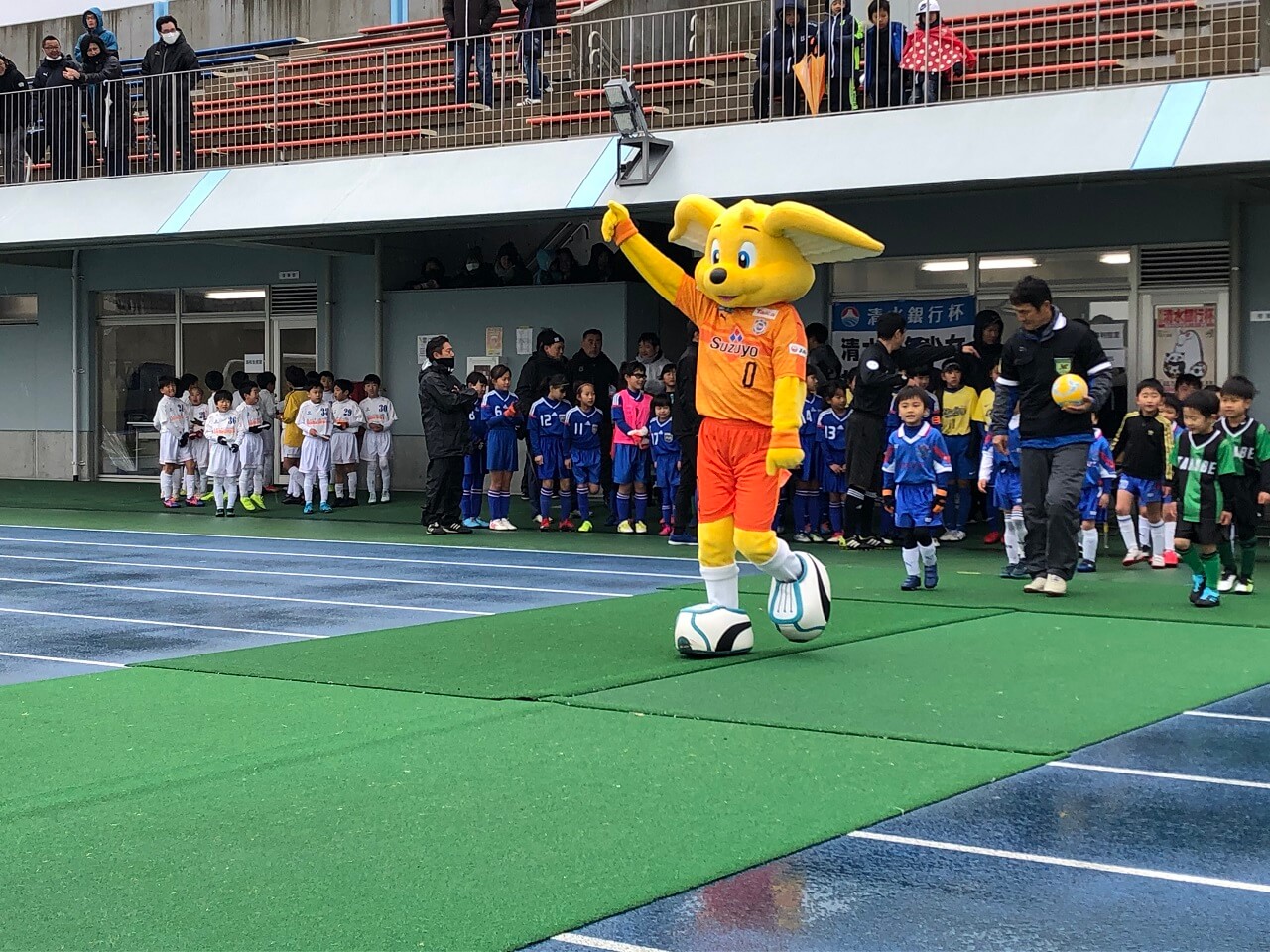 清水エスパルスのオフィシャルクラブパートナーでもある清水銀行が協賛されている同大会。パルちゃんは小学女子・幼児の部の決勝戦試合前のエスコートを任され、選手とともに入場しました。雨の中の決勝戦となりましたが、パルちゃんは、元気なプレーを見せる選手たちに熱い応援を送っていました。