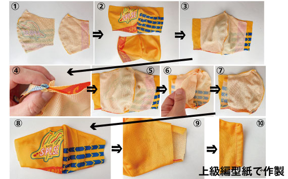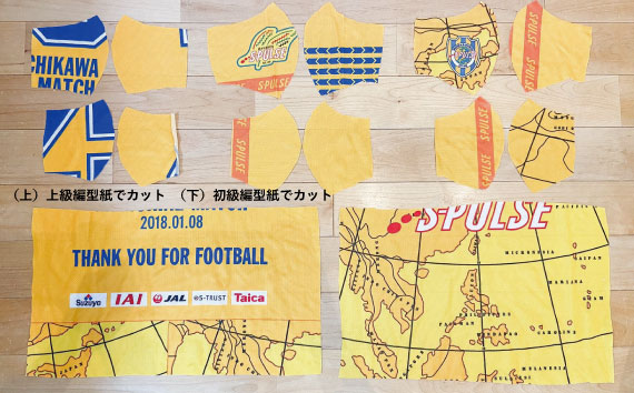 記念配布シャツを使ってみんなで手作りマスクをつくりましょう。 皆さまのご家庭でのマスクづくりにお役立てください。また、ご家庭で使用していただく枚数に加え、マスクを余分に作っていただける方は、エスパルスで取りまとめ、静岡市に寄付いたします。是非ご参加ください。