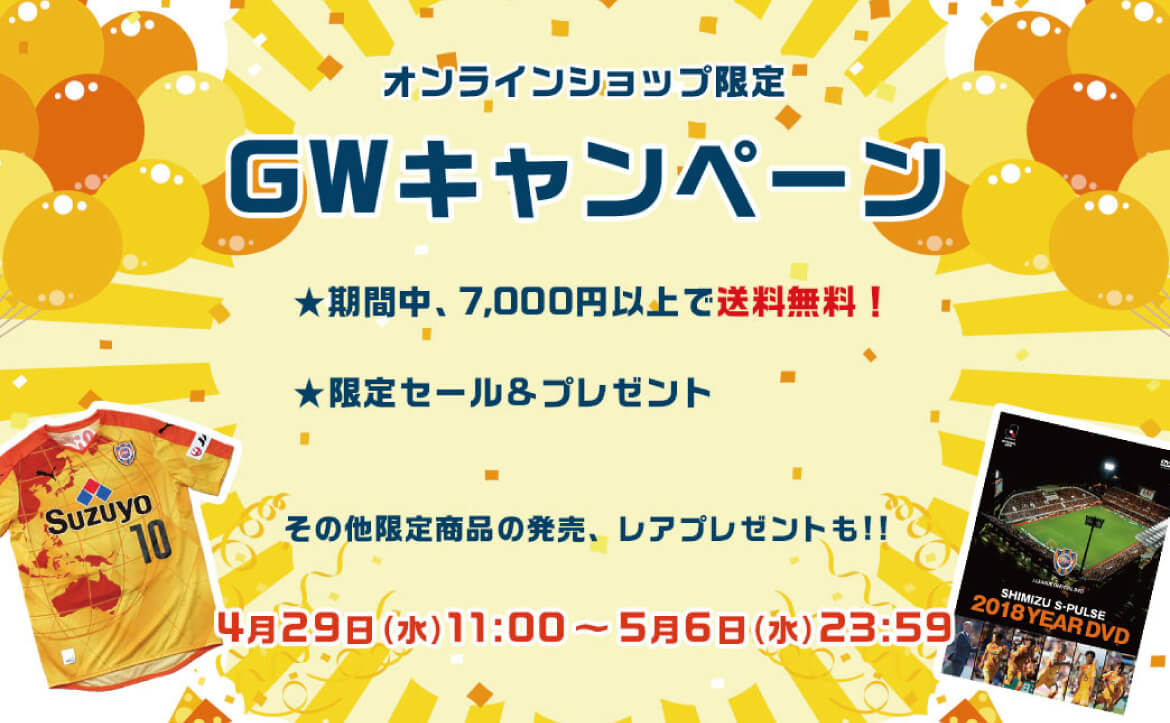 【キャンペーン期間】 4月29日(水)11:00~5月6日(水)23:59 【開催場所】 エスパルスオフィシャルオンラインショップ