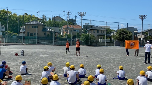 5月29日(金)、静岡市立大谷小学校に奥井諒選手と新井栄聡選手が、新型コロナウイルスの影響による長期休校により、体力面のみならず、メンタル面にも影響を受けている子どもたちに直接エールを届けるため訪問いたしました。