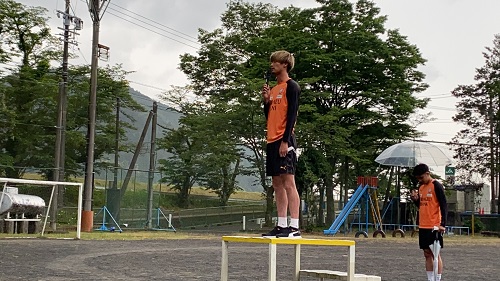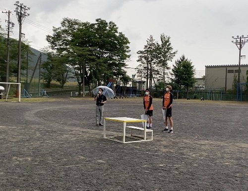 奥井選手は児童たちに対し、「新型コロナの影響で、普段の生活が送れなく不安に思ったり、ストレスを感じたりすることもあると思います。僕たちも公式戦が3か月以上できなく、1か月半チームのみんなと練習ができない状況です。その中、僕は体力を落とさないよう自転車に乗ることを始めました。皆さんもできることは限られているかもしれませんが、この状況の中でもできることを考え、楽しんでもらえればと思います。そしてまた、みんなと笑顔で会いたいと思います。一緒に頑張りましょう!」とエールを送り、新井選手は、「昨日の練習の中でチーム・個人の目標を明確に決めました。皆さんもクラスや個人の目標を決めて、クラスを良くしていこう、家でお父さんやお母さんのお手伝いをしようなど、自分のできることを少しずつやっていけば、また明るい未来がきっとくると思います。まだコロナウイルスの影響が続くと言われていますが、負けずに僕たちも頑張るので、みんなも頑張って学校生活を送ってください!」とそれぞれエールを送りました。