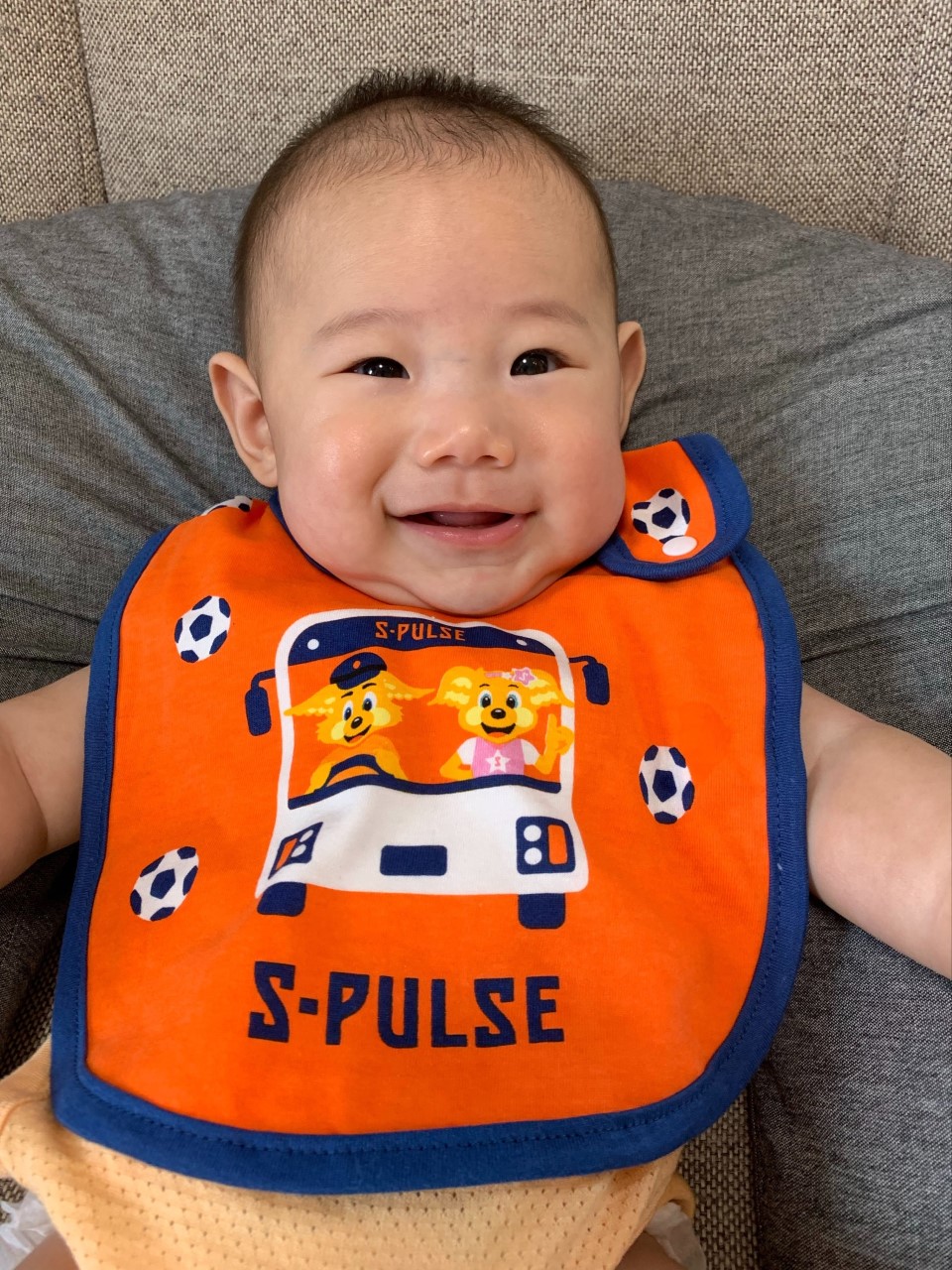 「かわいらしいスタイをありがとうございます。新型コロナウイルスで、なかなか外出ができなくなっていますが、終息しましたら、スタイをつけて、しずてつバス、電車に乗って、外出したいと思います、また、エスパルスの応援にも行きたいと思います。エスパルスには、ホームタウン静岡市が元気になるよう頑張ってほしいです。」と御礼の言葉をいただきました。