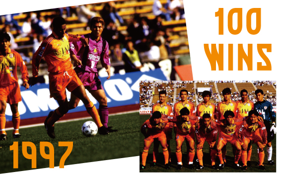 記念ロゴを基調に、達成日9月19日湘南ベルマーレ戦での歓喜シーンをデザインします。