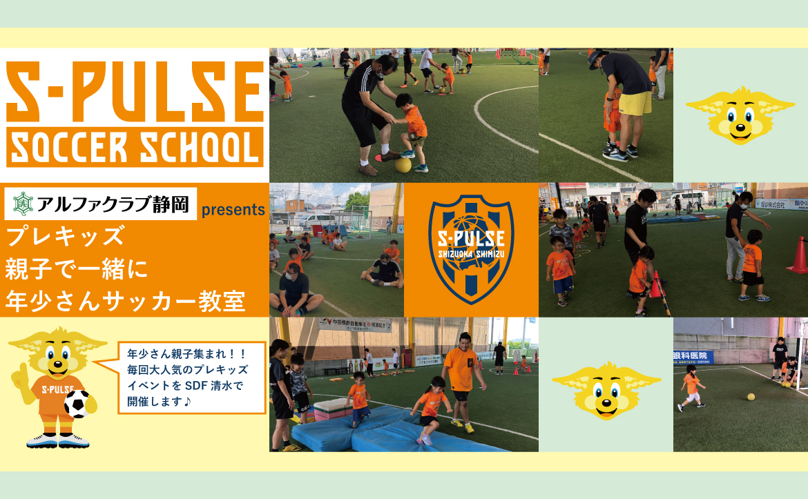 清水エスパルスは、地域事業応援パートナー アルファクラブ静岡様ご協力のもと、10月4日(日)にエスパルスドリームフィールド清水にて、年少児の子ども1名と保護者1名の親子を対象とした『アルファクラブ静岡 presents年プレキッズ 親子で一緒に年少さんサッカー教室』を開催いたします。