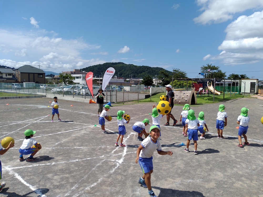 エスパルスアカデミーは9月2日(水)、駿東郡清水町のすこやか保育園を対象にスポーツ巡回教室を実施しました。