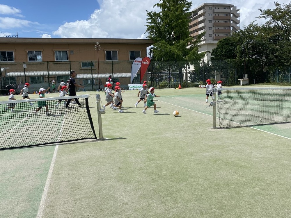 気温も湿度も高くとても暑い中での活動でしたが、コーチの話をよく聞き、様々な事にチャレンジしていました。難しいことがあった時も、先生や友達、コーチにヒントを聞いたり、何度も挑戦する姿が見られました。