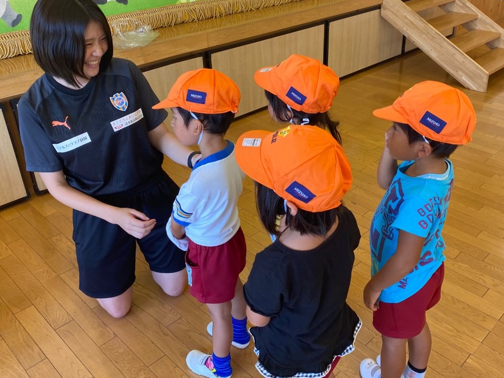 みずほ銀行様にご協賛いただき、オリジナルエスパルスキャップを園児にプレゼントいたしました。 ©︎︎︎S-PULSE