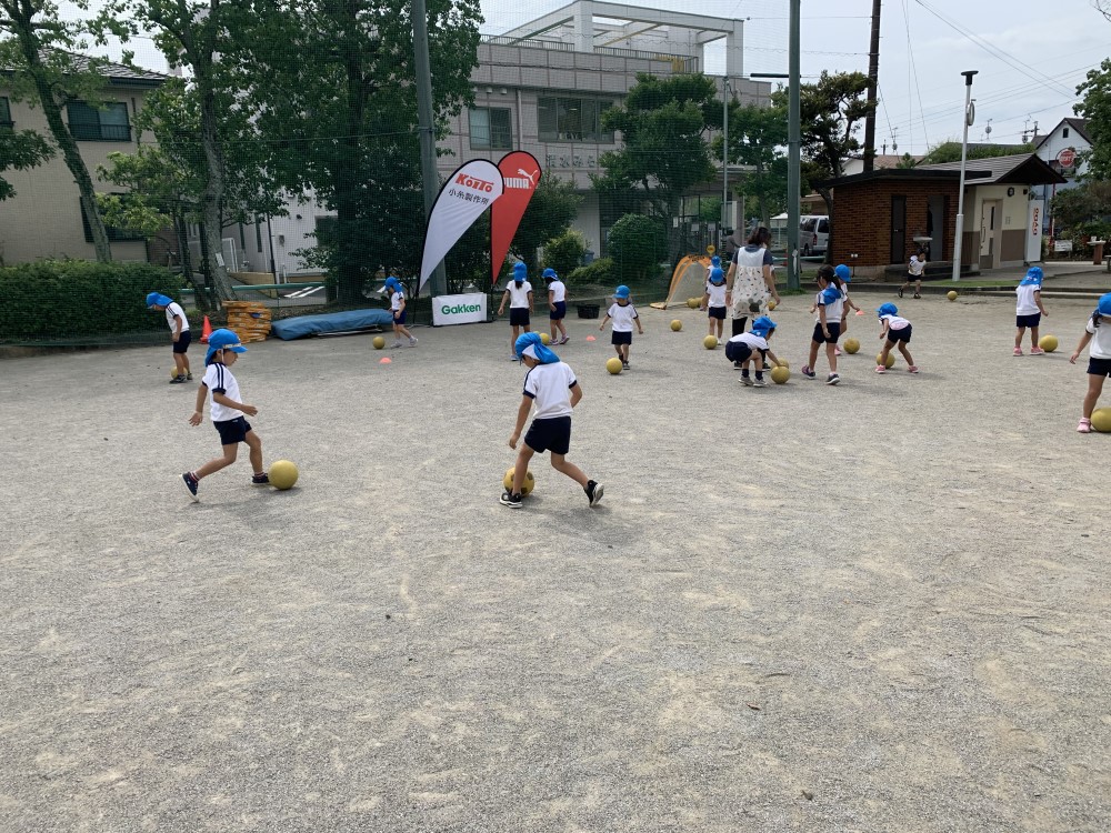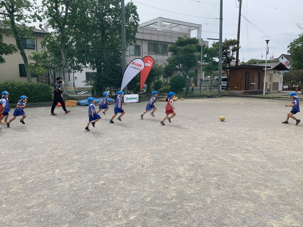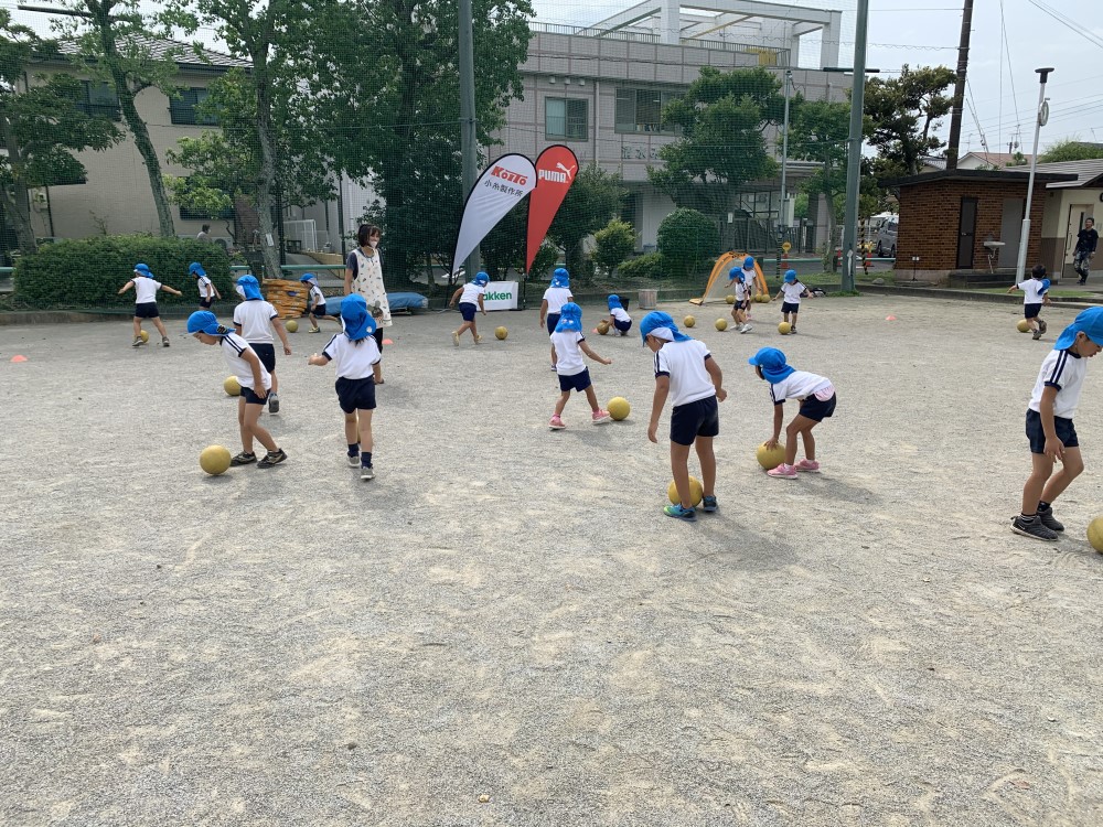 最初から最後まで全力で、元気よく活動しました。「難しい。」という声も多くありましたが、あきらめずに何回も取り組み、最後には「できた!」という笑顔を観ることができました。試合でもたくさんボールを追いかけました。