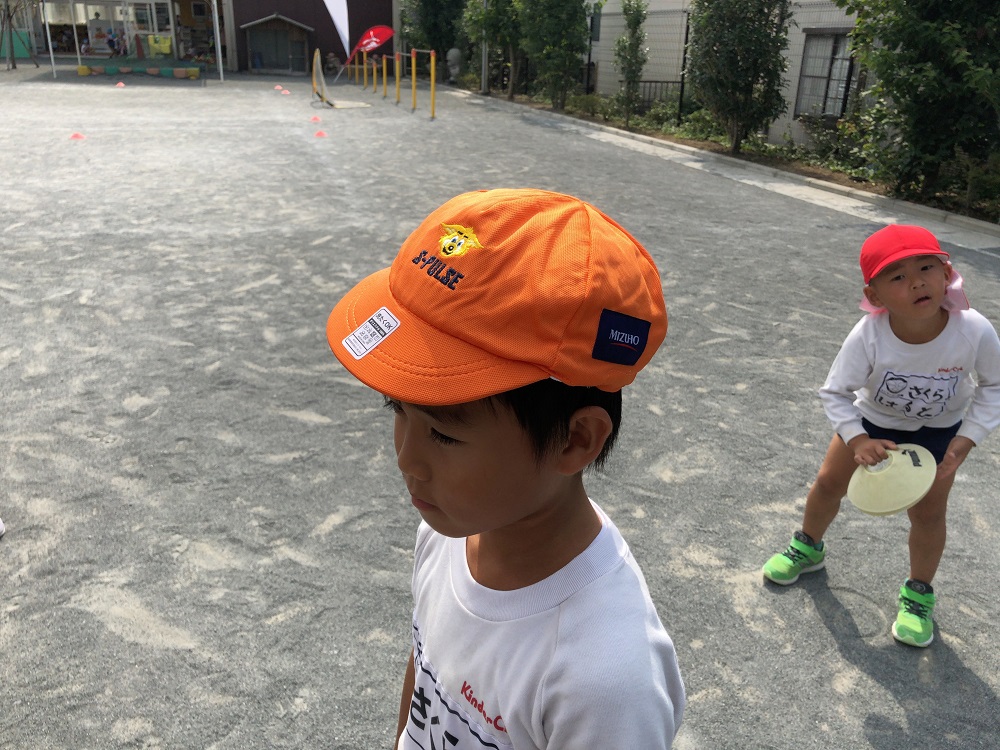 秋晴れの中コーチのお話をよく聞き最後まで楽しくボールを追いかけることが出来ました。みずほ銀行様にご協賛いただき、オリジナルエスパルスキャップを園児全員に配布いたしました。