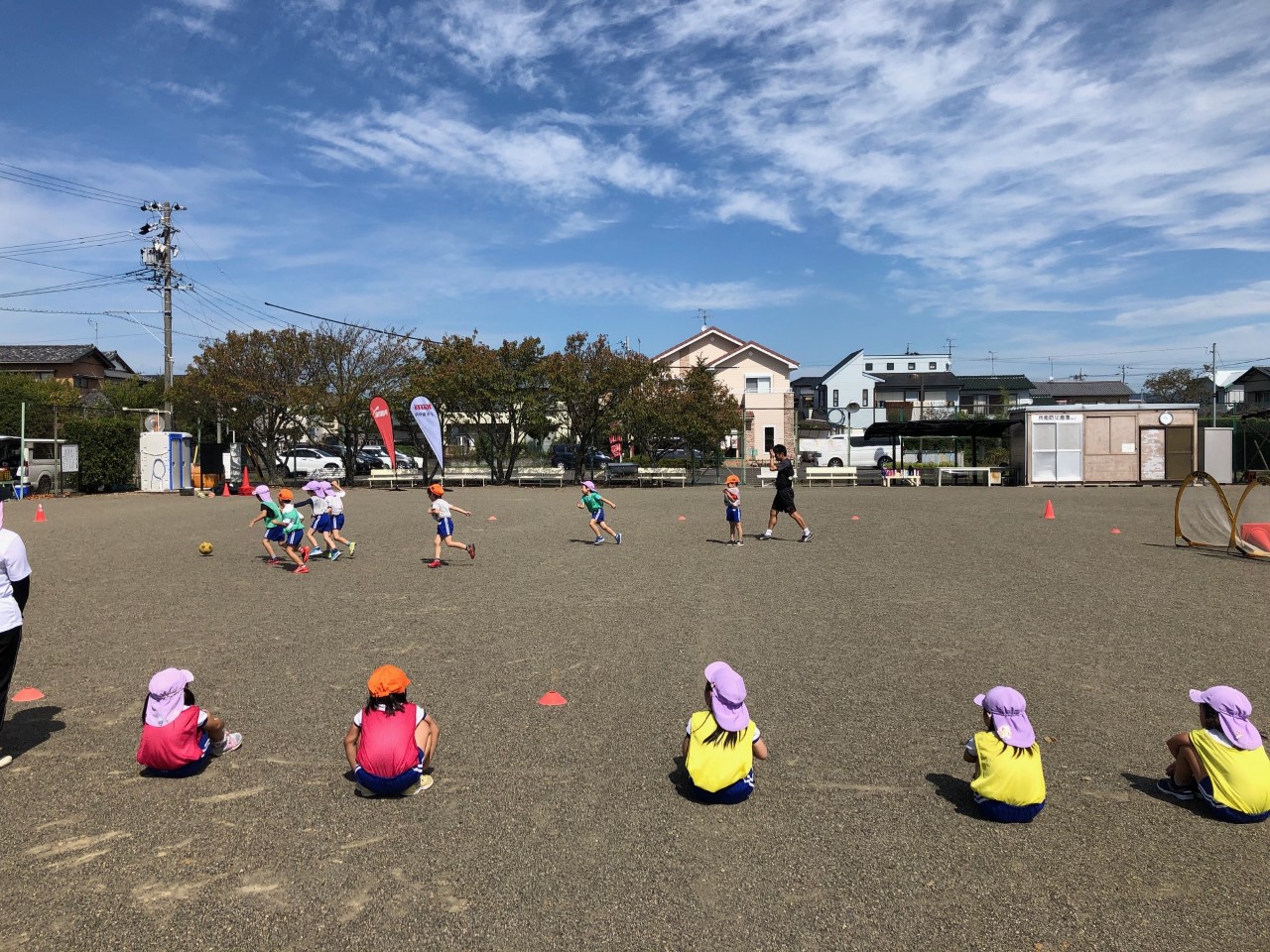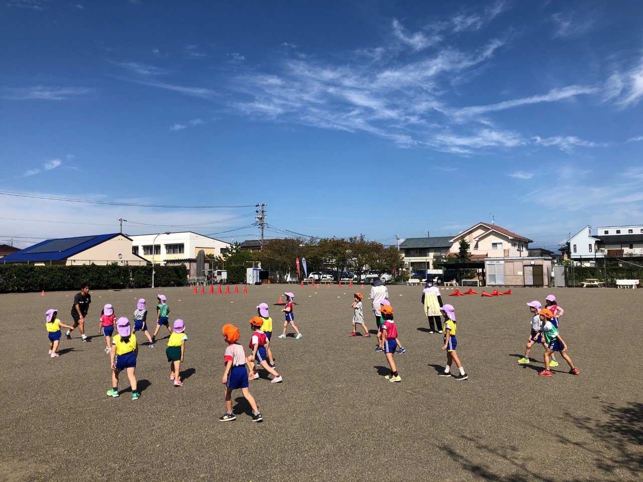 気持ちの良い秋晴れの中、一生懸命に体を動かすことができました。転んで泣いてしまう子どももいましたが最後までがんばって、試合では点が入ってみんなと喜んでいました。