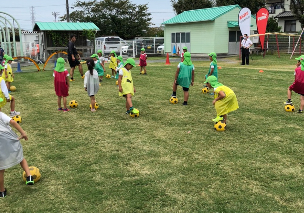 エスパルスアカデミーは10月5日(月)、駿東郡の清水西幼稚園を対象にスポーツ巡回教室を実施しました。