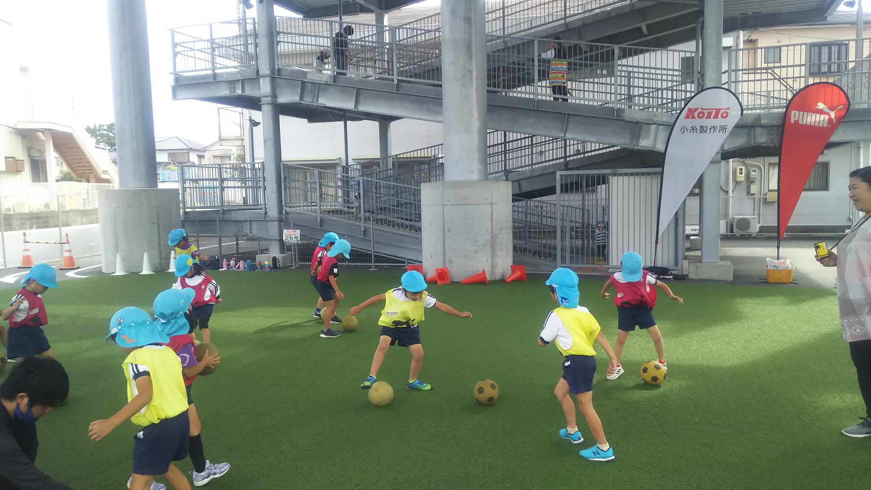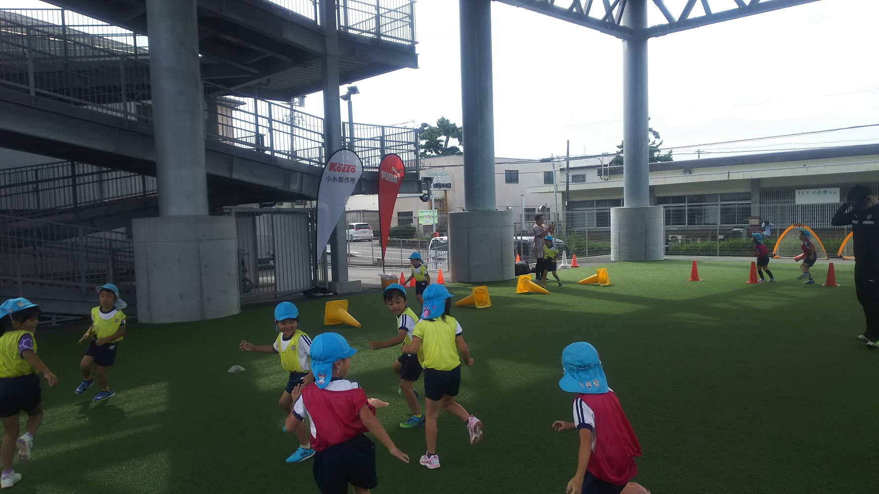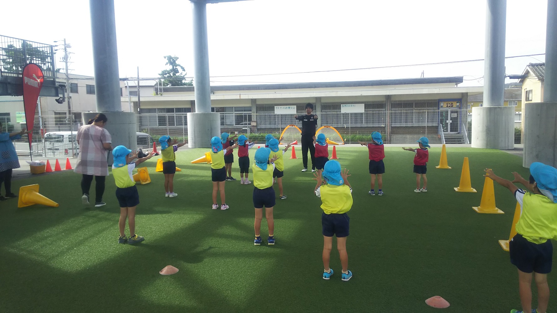 実際にボールを使って見本を見せるコーチをよく見て真似をしながら、たくさんの体験が出来たと思います。一生懸命ボールを追う姿はとても逞しく、さすが年長さんだと感じました。