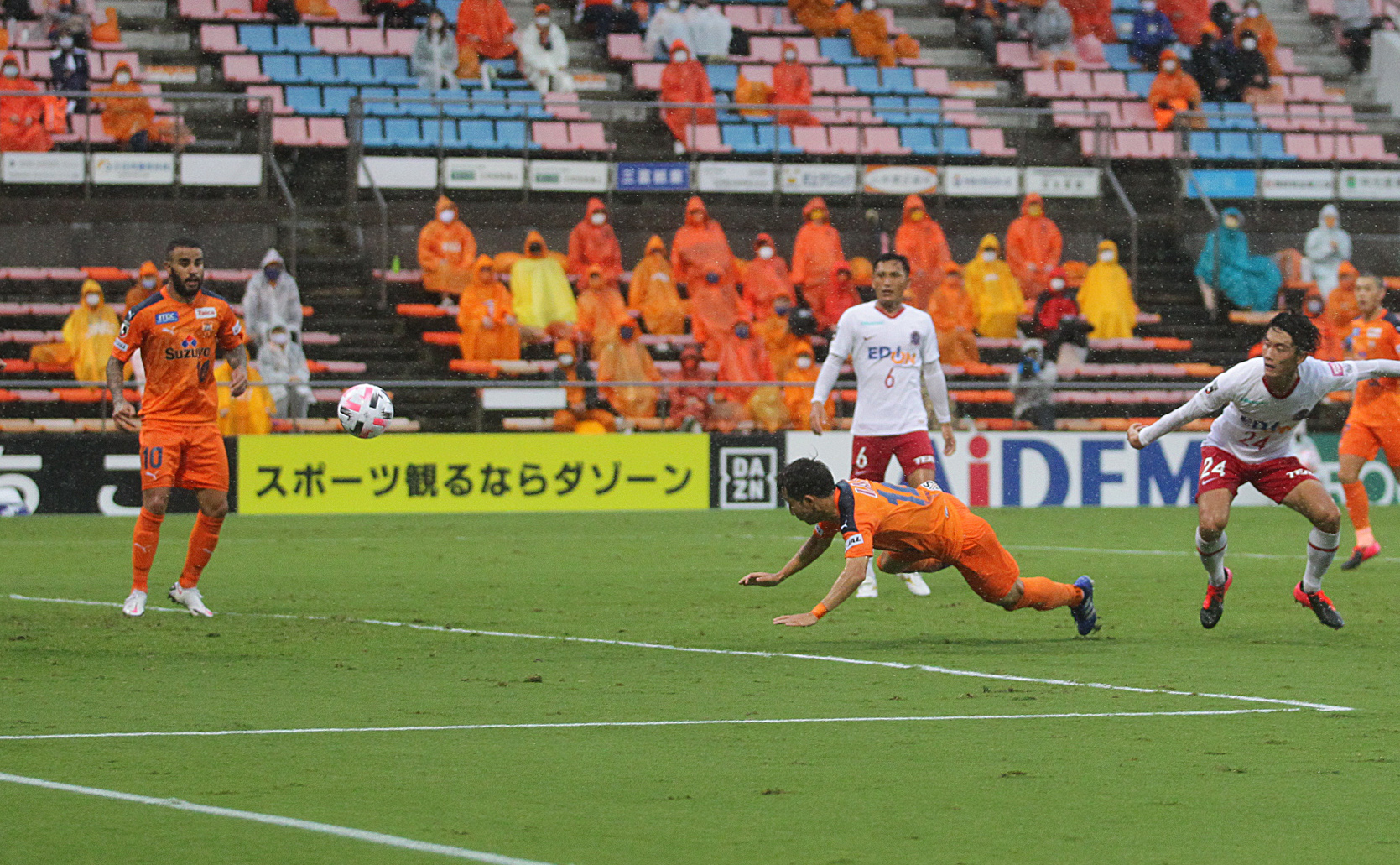 Another frustrating game played in impossible rainy conditions! S-Pulse were caught cold in the 14th minute when Hiroshima directly scored from a splendid free kick taken outside the box Nishibe could do little to save.