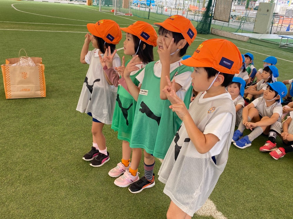みずほ銀行様にご協賛いただき、オリジナルエスパルスキャップを園児にプレゼントいたしました。 ©︎︎︎S-PULSE