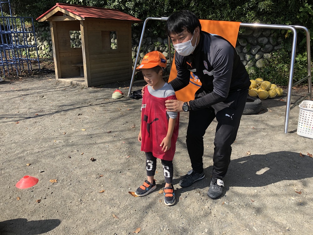 秋晴れの中、コーチのお手本をよく見てとても元気いっぱいに取り組んでくれました。
