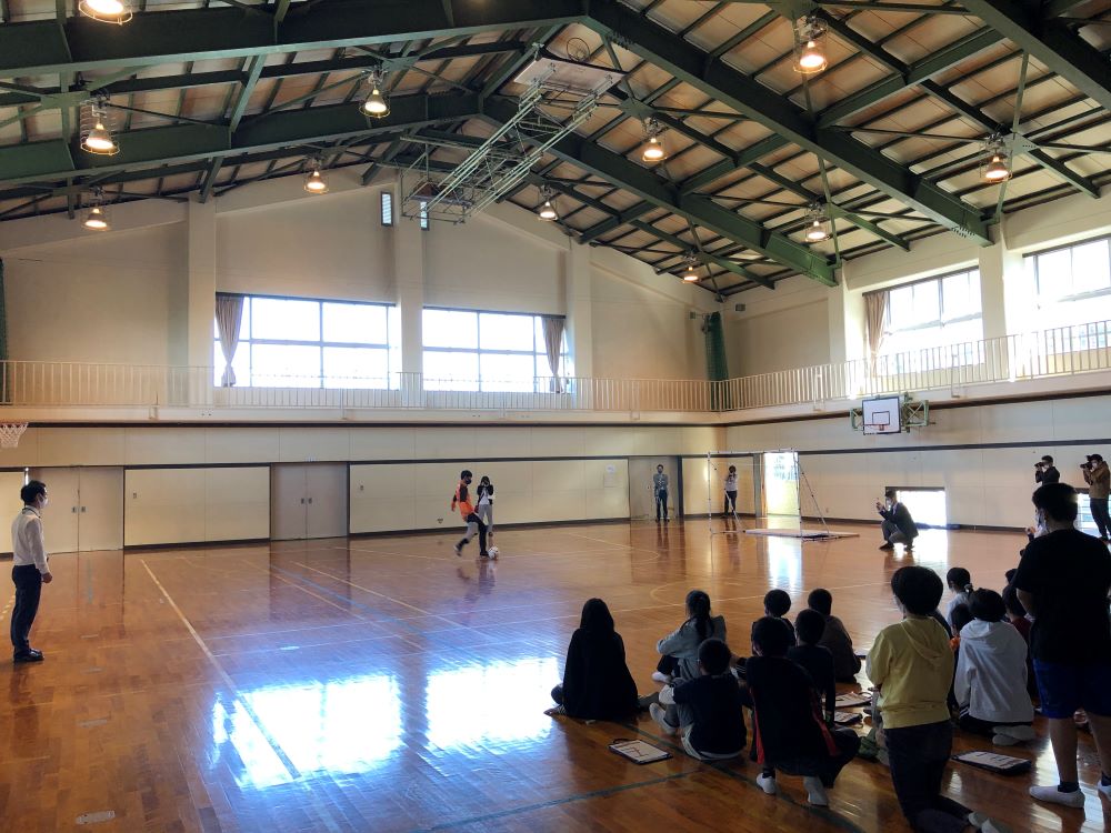 今年度2回目の開催となった『エスプラス』は、同校の5年生56名を対象に選手参加型授業 ~理科編~「サッカーで学ぶ人の体のつくりと運動」の授業を実施しました。