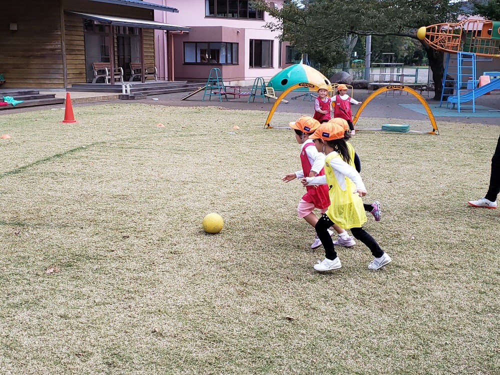 ふかふかの芝生の園庭で思い切り体を動かすことができました。試合でも素晴らしいゴールが多くあり、仲間と喜んでいる子どもたちの姿はとても印象的でした。