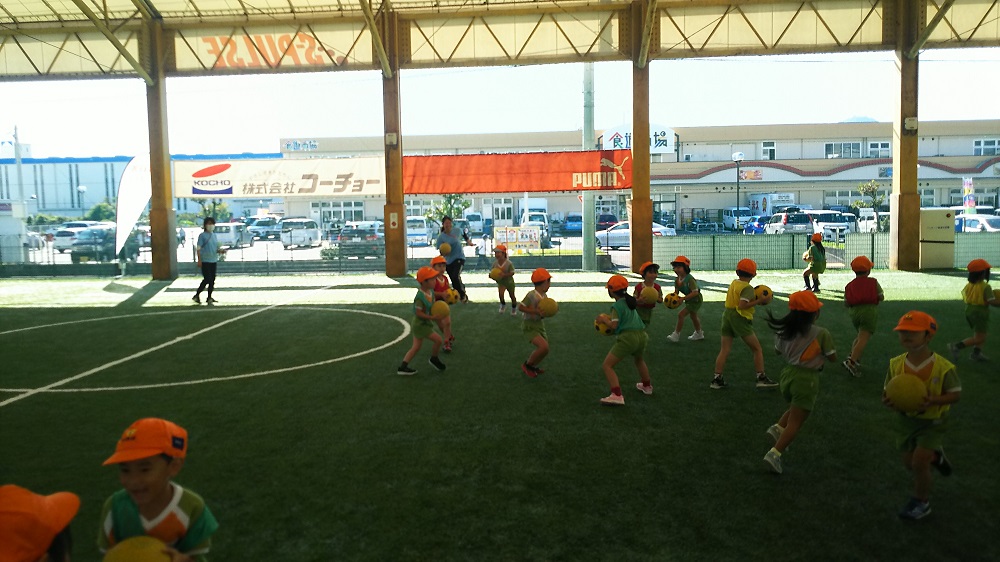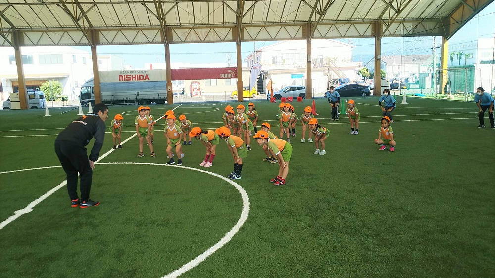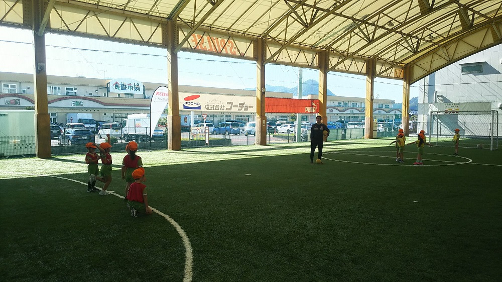 秋晴れの心地よい天候のなか、園から20分かけて友達と手をつなぎながらSDF駿東に来てくれました。元気な挨拶から始まり、コーチとの約束を守りながら活動に参加してくれました。最後の試合では応援合戦が始まり白熱した試合になりました。