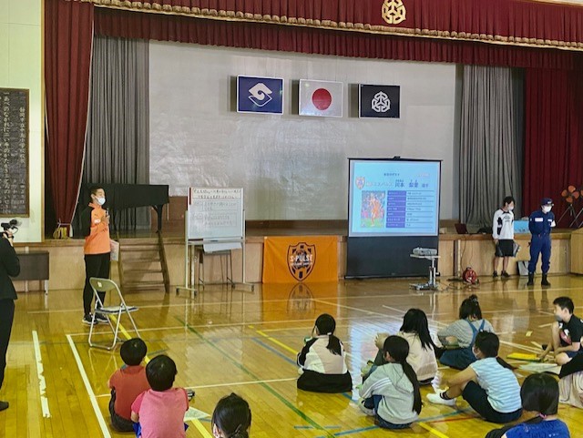 エスパルスは、今年9月から「ソナエル東海」と題し、東海地区6クラブで連携して防災に関する取り組みを行っており、今回はその取り組みの一環として、子どもたちとともに防災に関する知識を学びました。