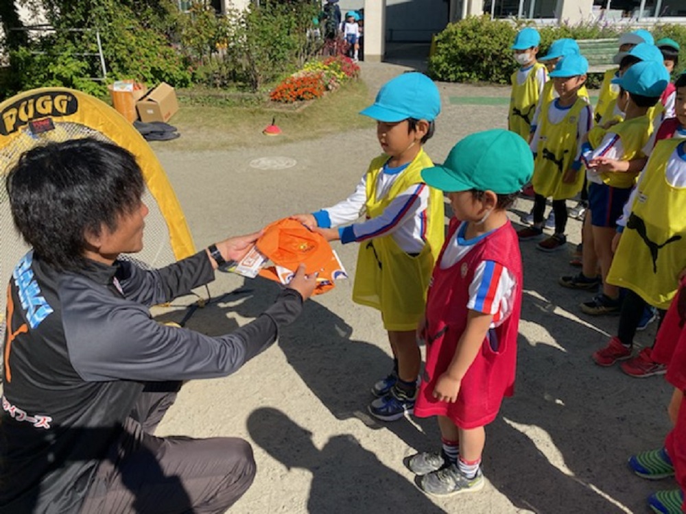みずほ銀行様にご協賛いただき、オリジナルエスパルスキャップを園児にプレゼントいたしました ©︎︎︎S-PULSE