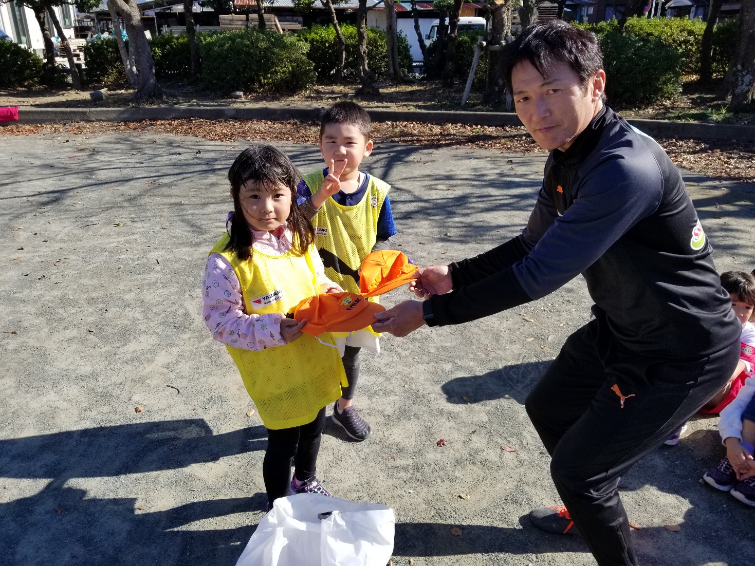 みずほ銀行様にご協賛いただき、オリジナルエスパルスキャップを園児にプレゼントいたしました ©︎︎︎S-PULSE