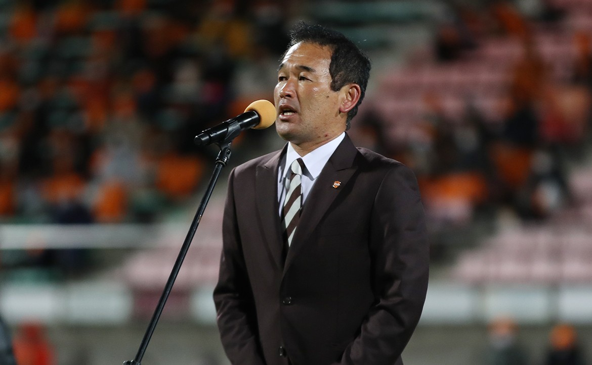 いつもエスパルスを応援していただき誠にありがとうございます。また今日は、ホーム最終戦、大変寒いなか最後まで観戦いただき、最後まで熱い声援をいただき本当にありがとうございます。今シーズンは、社長、GM、監督の3役が交代し、「RE-FRAME」のスローガンの元、また新たなサッカースタイルにチャレンジしたシーズンでした。しかしながら、ファン・サポーターの皆さんの期待を大きく裏切る結果となり、大変申し訳なく思います。皆さまに、お詫びしたいと思います。私自身、大変悔しいシーズンでした。