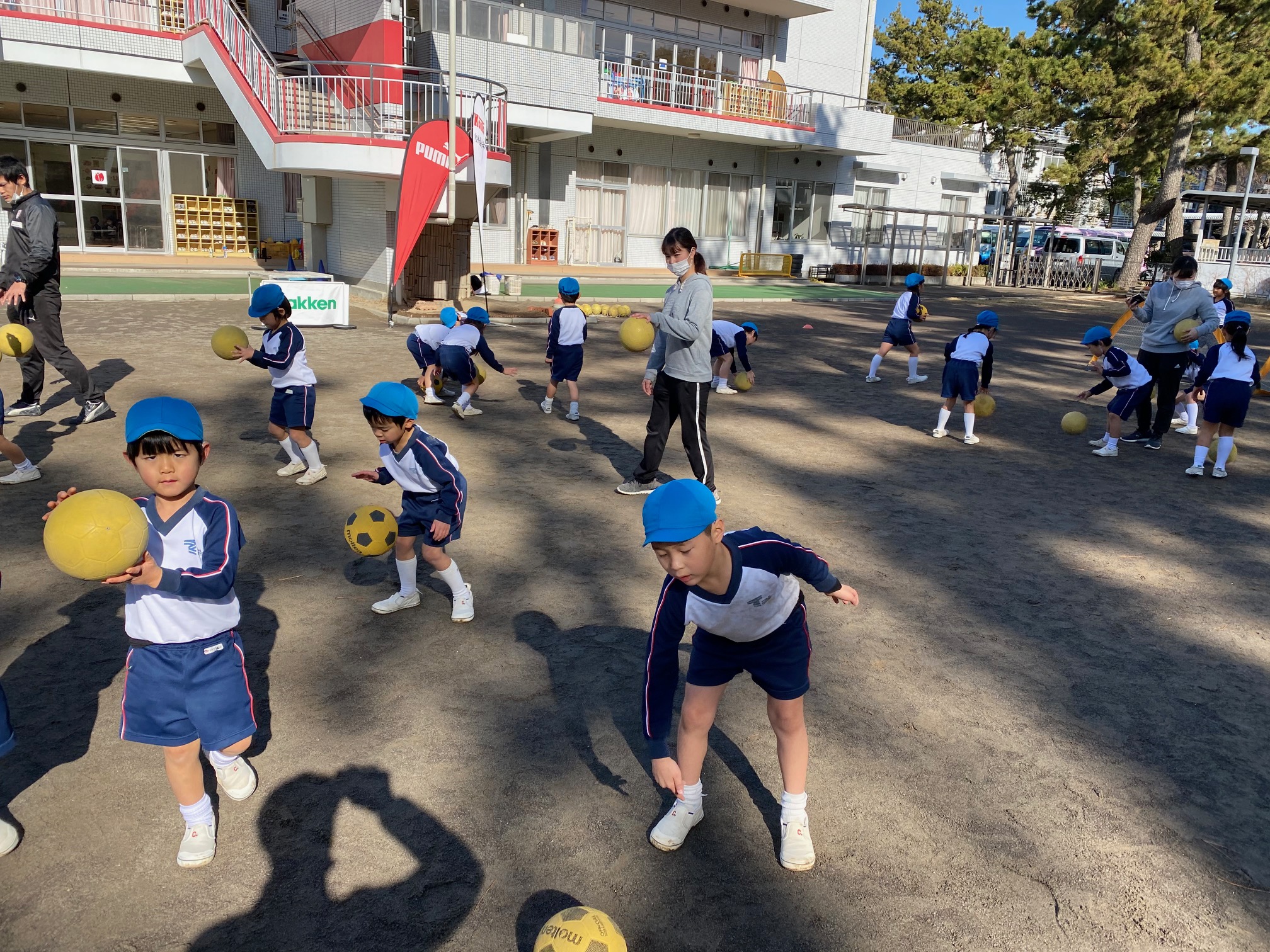 暖かい気候の中、元気よく活動に取り組んでくれました。最後のゲームでは男女共に一生懸命ボールを追いかける姿が印象的でした。