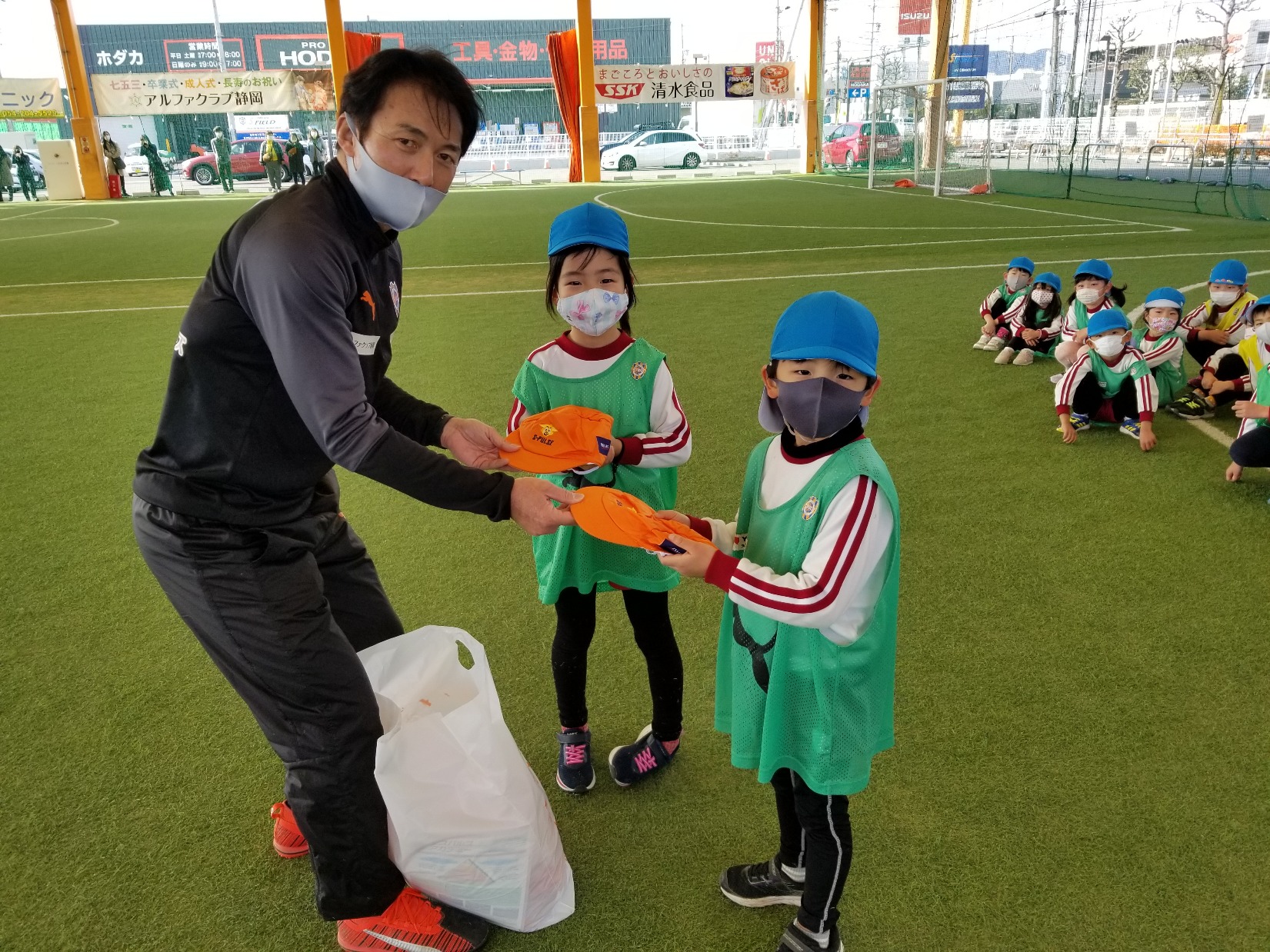 みずほ銀行様にご協賛いただき、オリジナルエスパルスキャップを園児にプレゼントいたしました ©︎︎S-PULSE