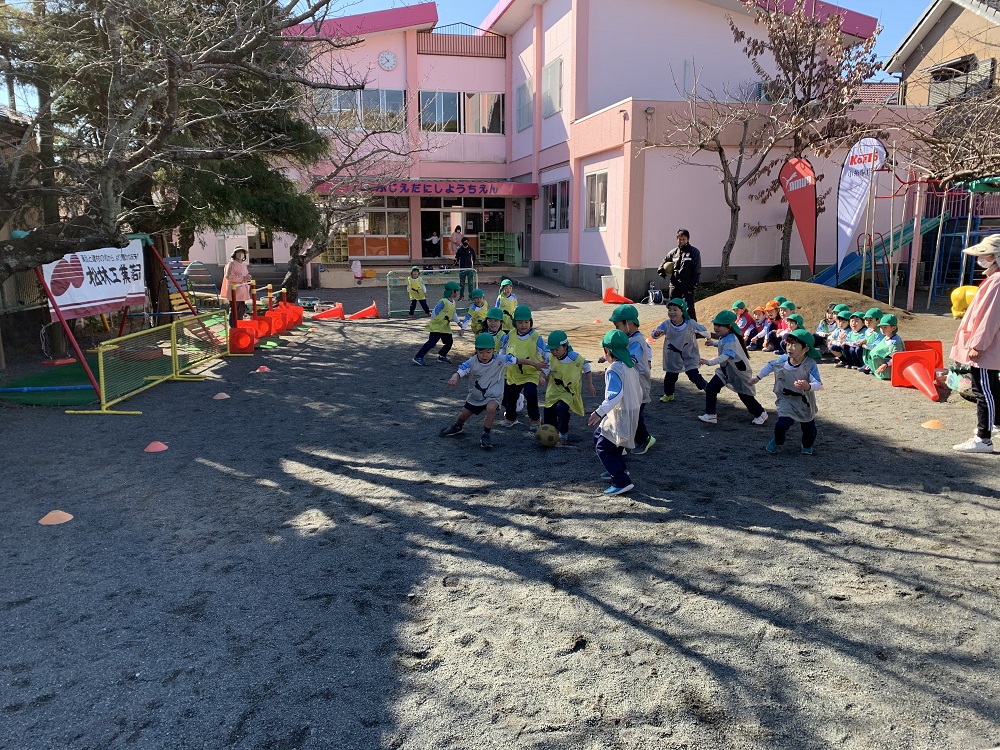 エスパルスアカデミーは2月3日(水)、藤枝市の藤枝西幼稚園を対象にスポーツ巡回教室を実施しました。
