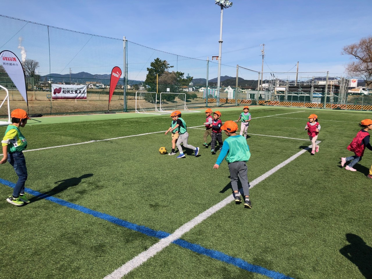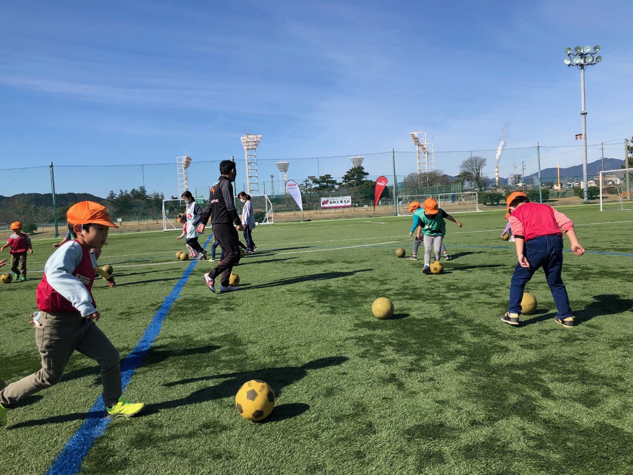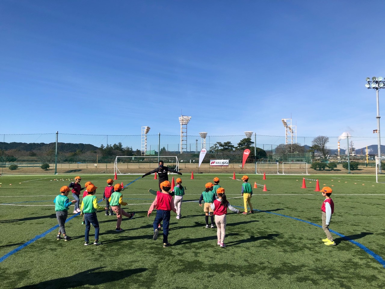 心が清らかな園児たちと活動してきました。青空のもと、元気にボールを追いかける姿にコーチ達はとても嬉しかったです。