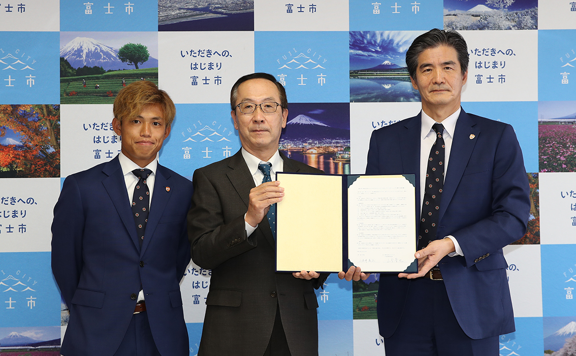 これまでも富士市様にご協力をいただき、サッカースクールやキャリア教育、巡回スポーツ教室など様々な取り組みを推進させていただいており、富士市様とエスパルスとは長年の深い関係がございます。今回このようなファミリータウンパートナーシップ協定を締結させていただき、これまでの取り組みを更に加速させ、進化させていけると考えております。