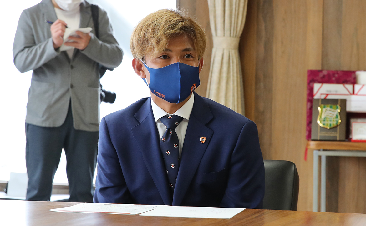 本日同席いただいている石毛選手は富士市出身で、石毛選手のエスパルスでの活躍は大変嬉しく、また身近に感じております。今シーズン、新チームとなり期待も高まっている中で協定締結のタイミングとなり、嬉しく思います。