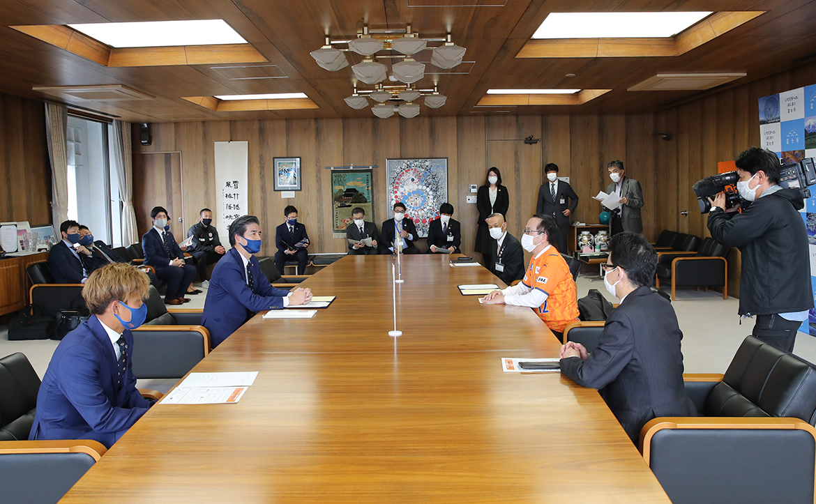 この度はファミリータウンパートナーシップ協定を締結いただき、大変ありがとうございます。また市長からチームへの励ましのお声も頂戴し、本当にありがとうございます。