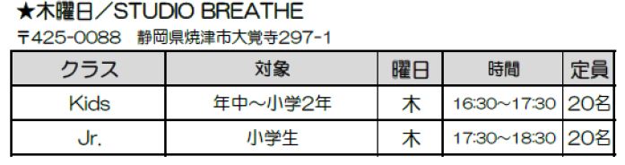 月会費 ①通常クラス(月3回) 5,500円(税込)
