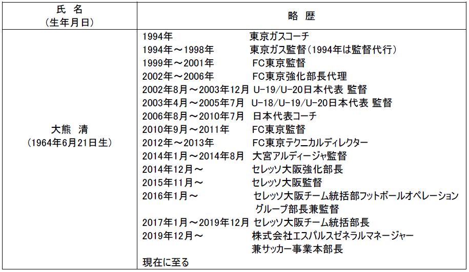 取締役 大熊 清 <新任> ゼネラルマネージャー兼サッカー事業本部長